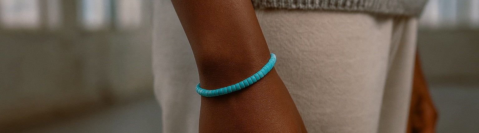 Hand-cut disk beads with organic texture — perfectly imperfect, timelessly modern.