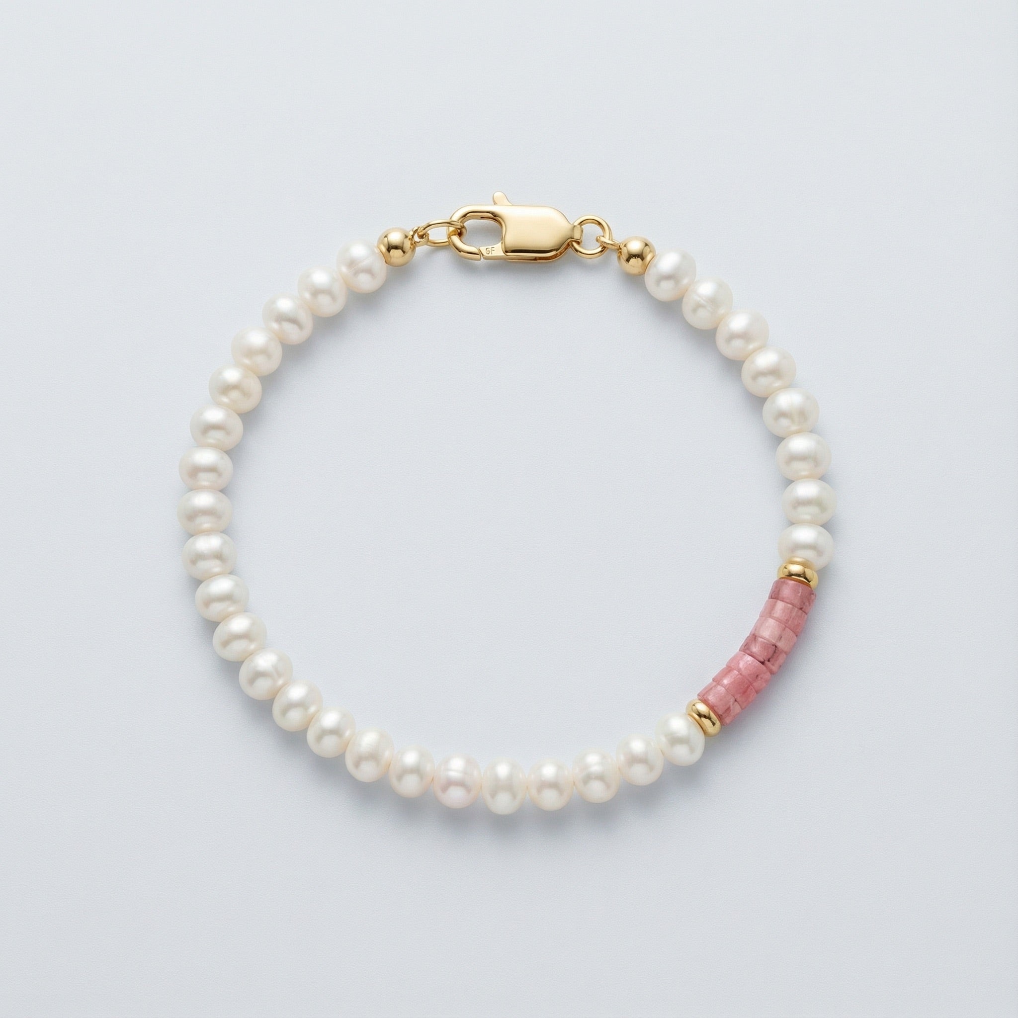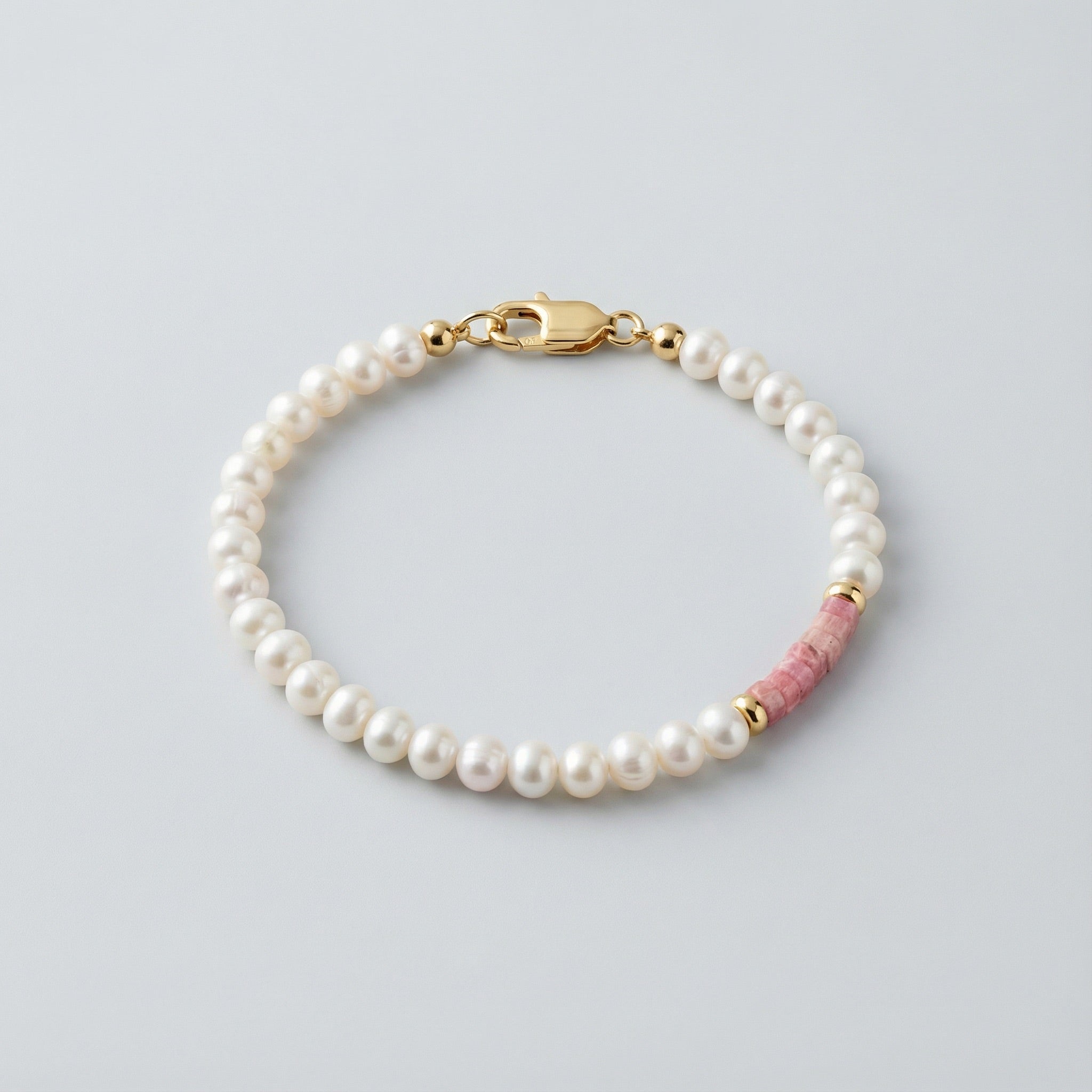 BEAD BRACELET WITH PEARLS AND RHODONITE HEISHI