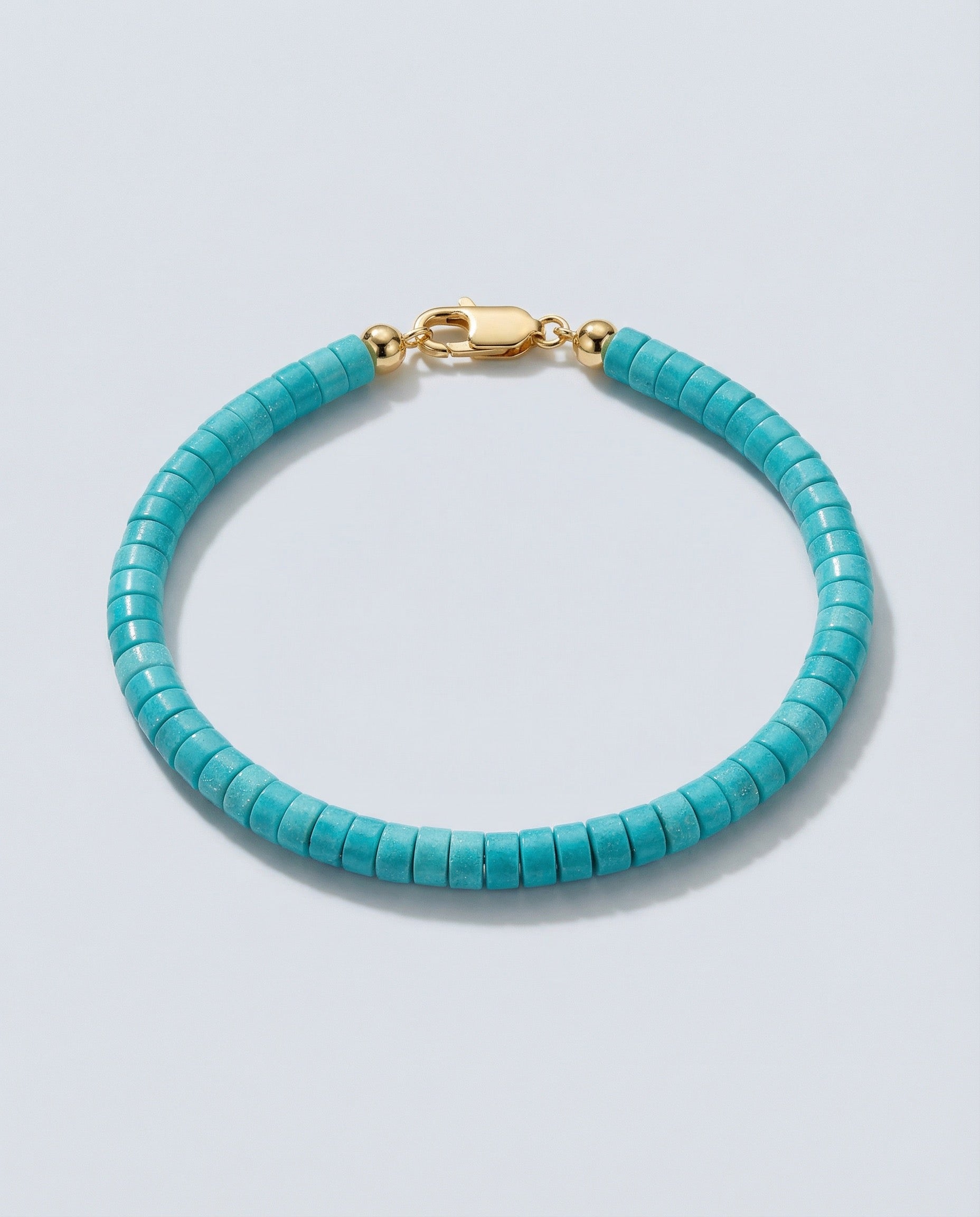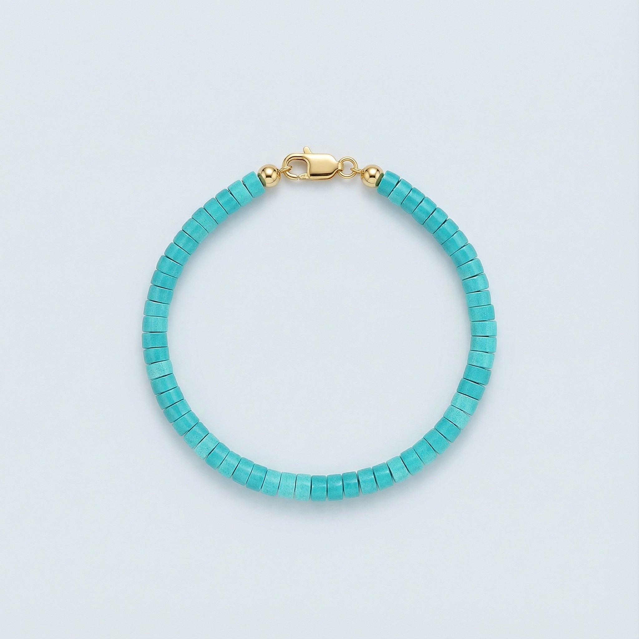 Bracelet features 4mm Turquoise heishi beads.