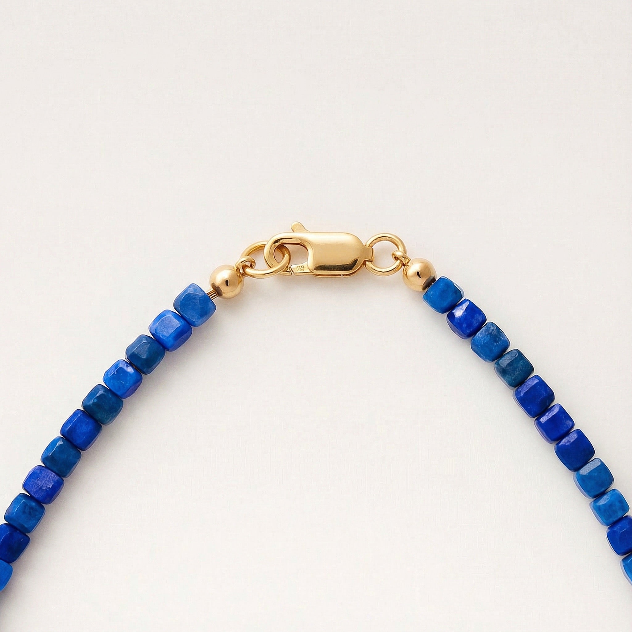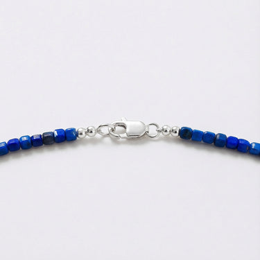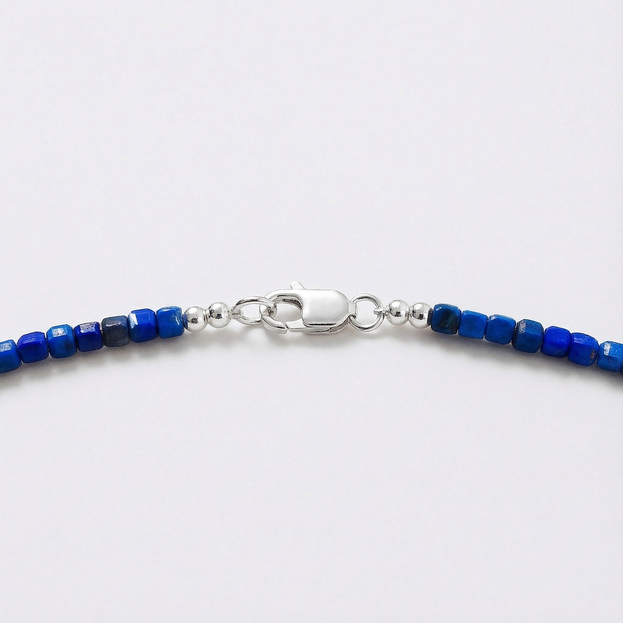 Necklace features 2-3mm faceted Lapis Lazuli cube beads.