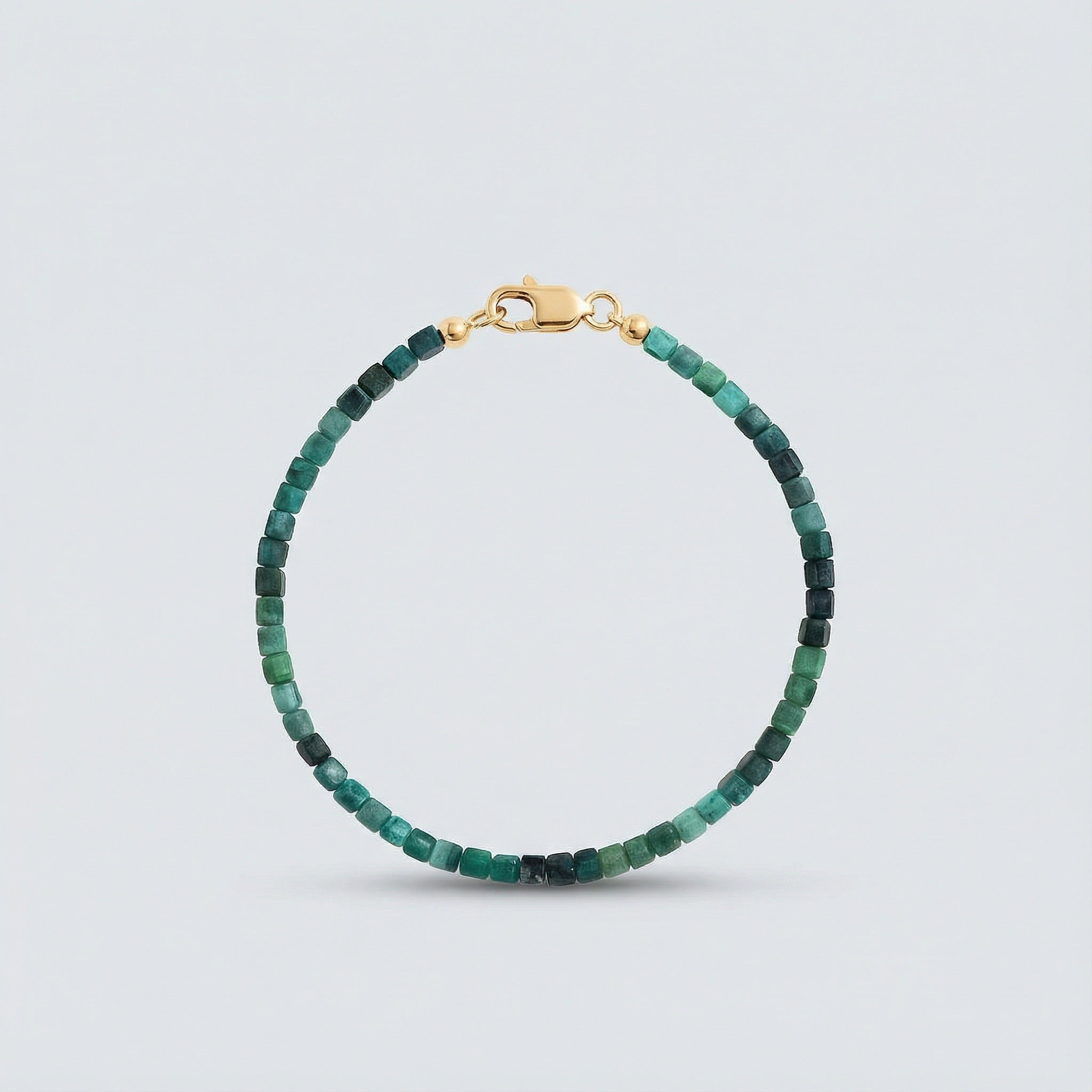 Bracelet features 3mm faceted Tourmaline cube beads.