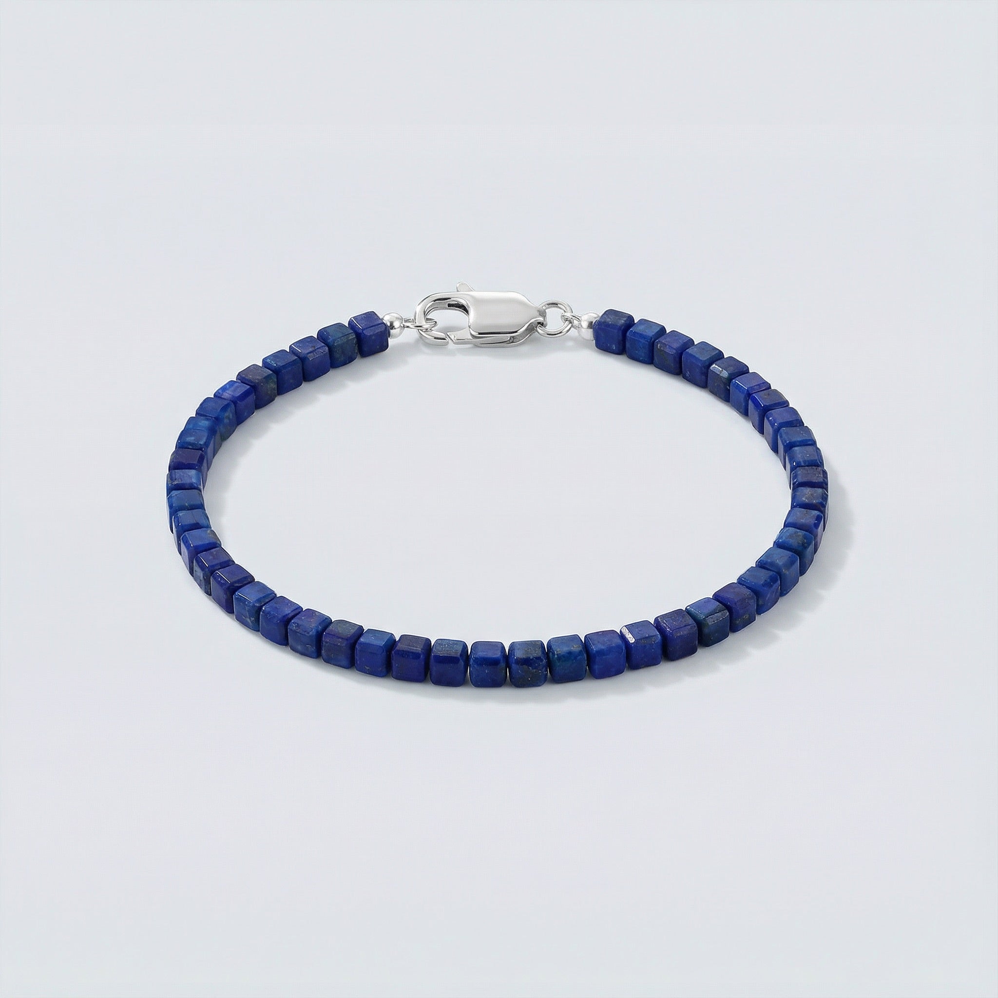 Bracelet features 3mm faceted Lapis Lazuli cube beads.