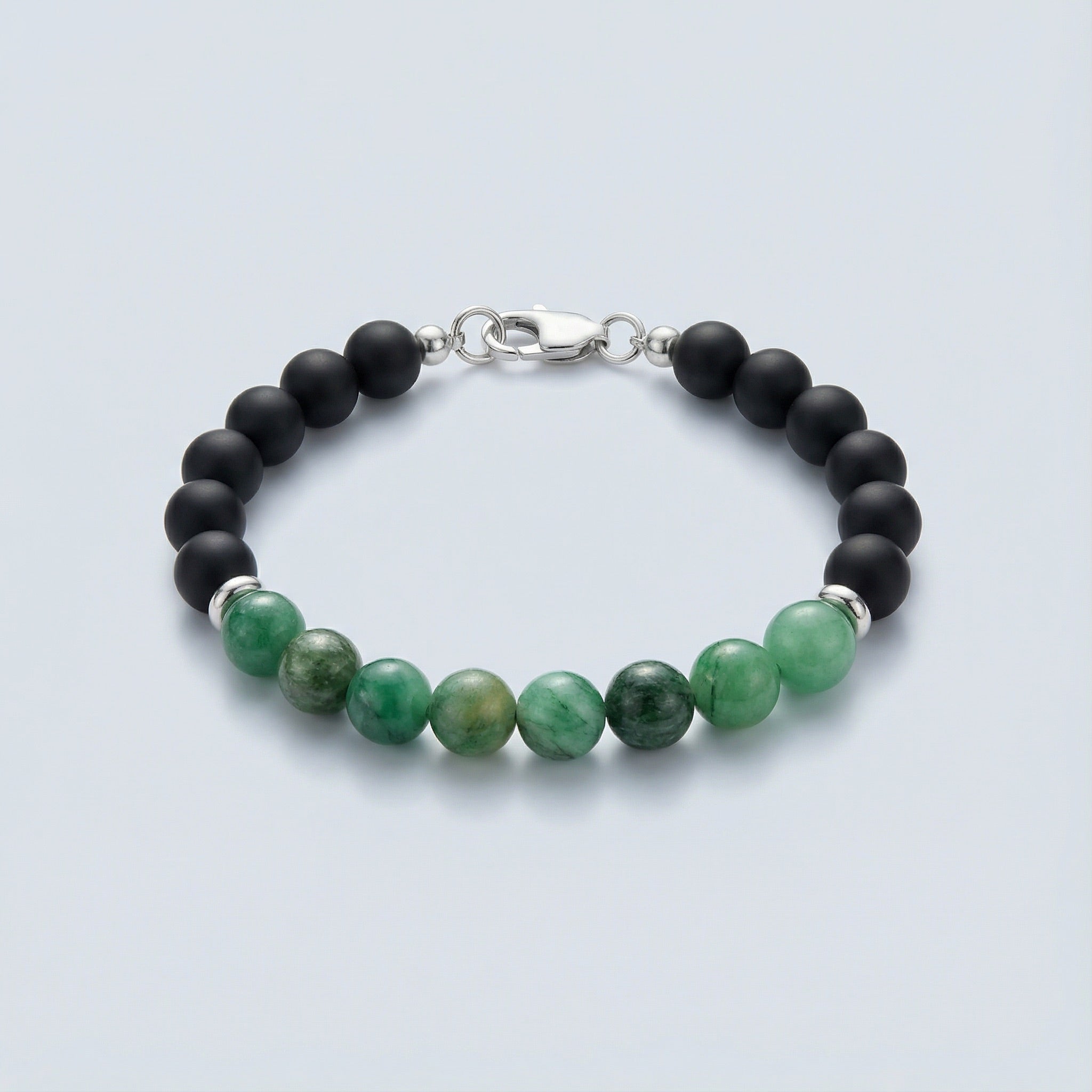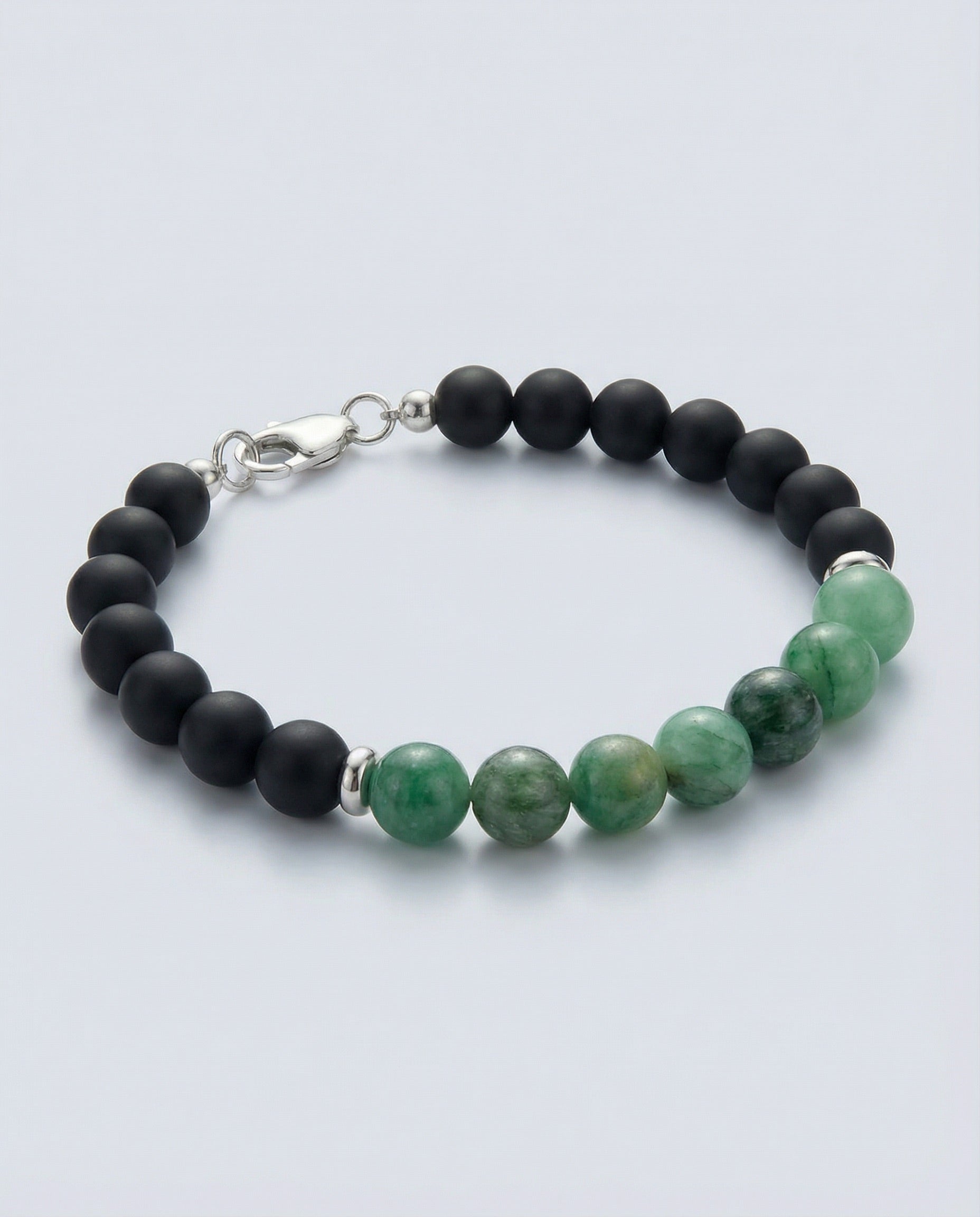 BEAD BRACELET WITH EMERALD AND MATTE BLACK ONYX - 8MM