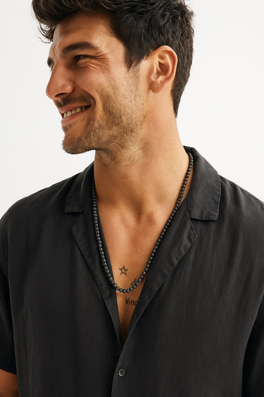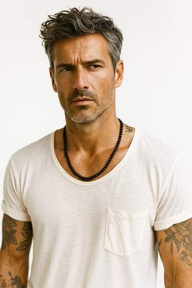 BEAD NECKLACE WITH GLOSS BLACK ONYX - 6MM