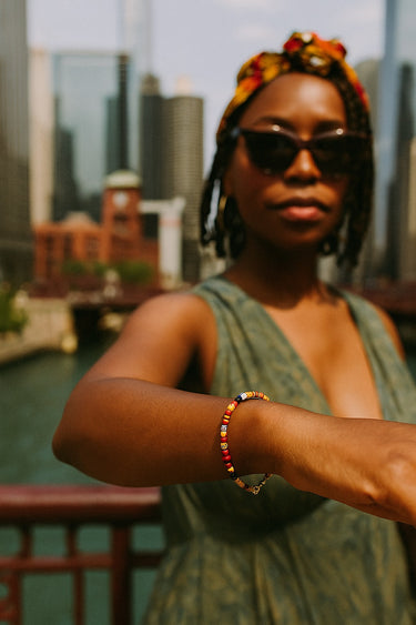BEAD BRACELET WITH CHEVRON AFRICAN GLASS