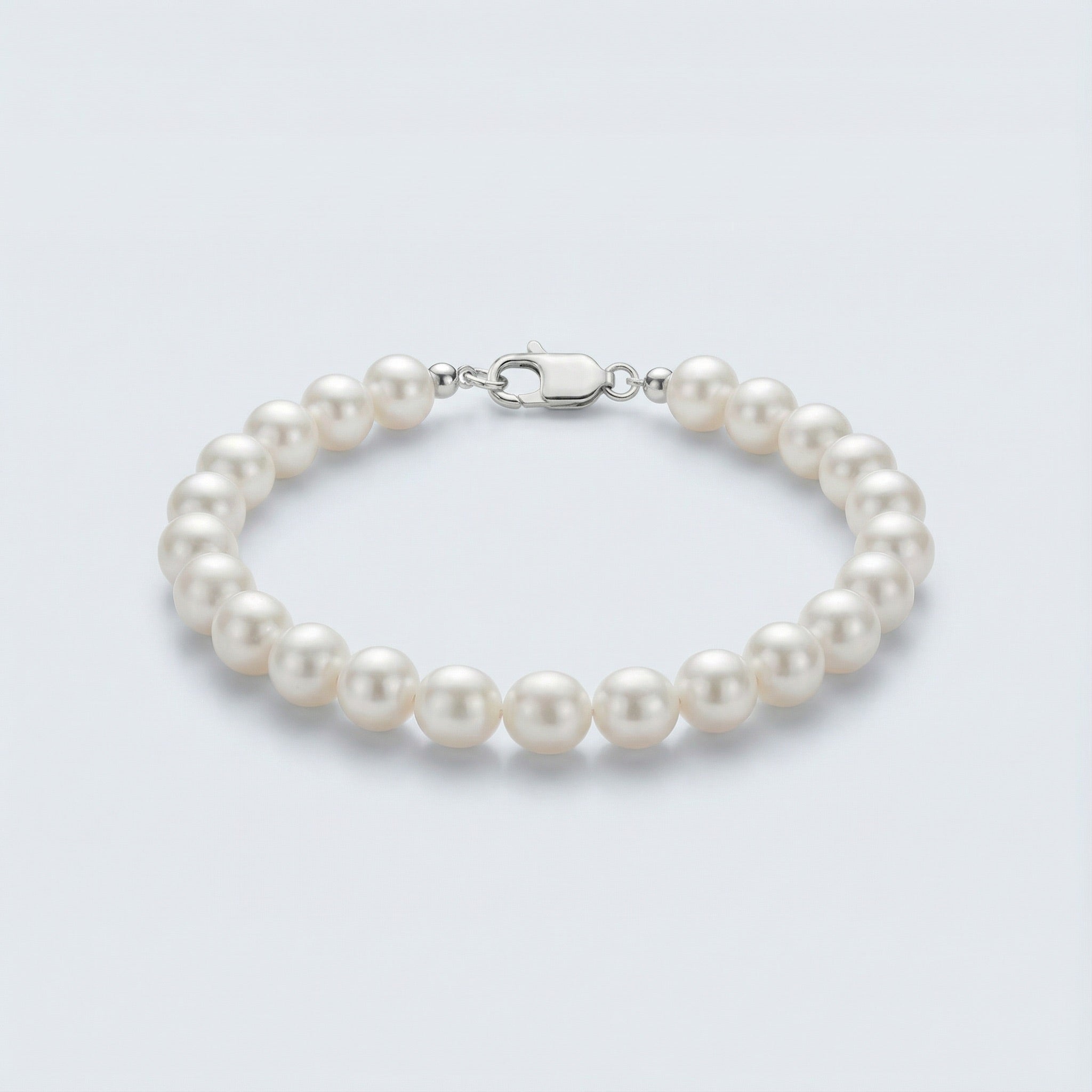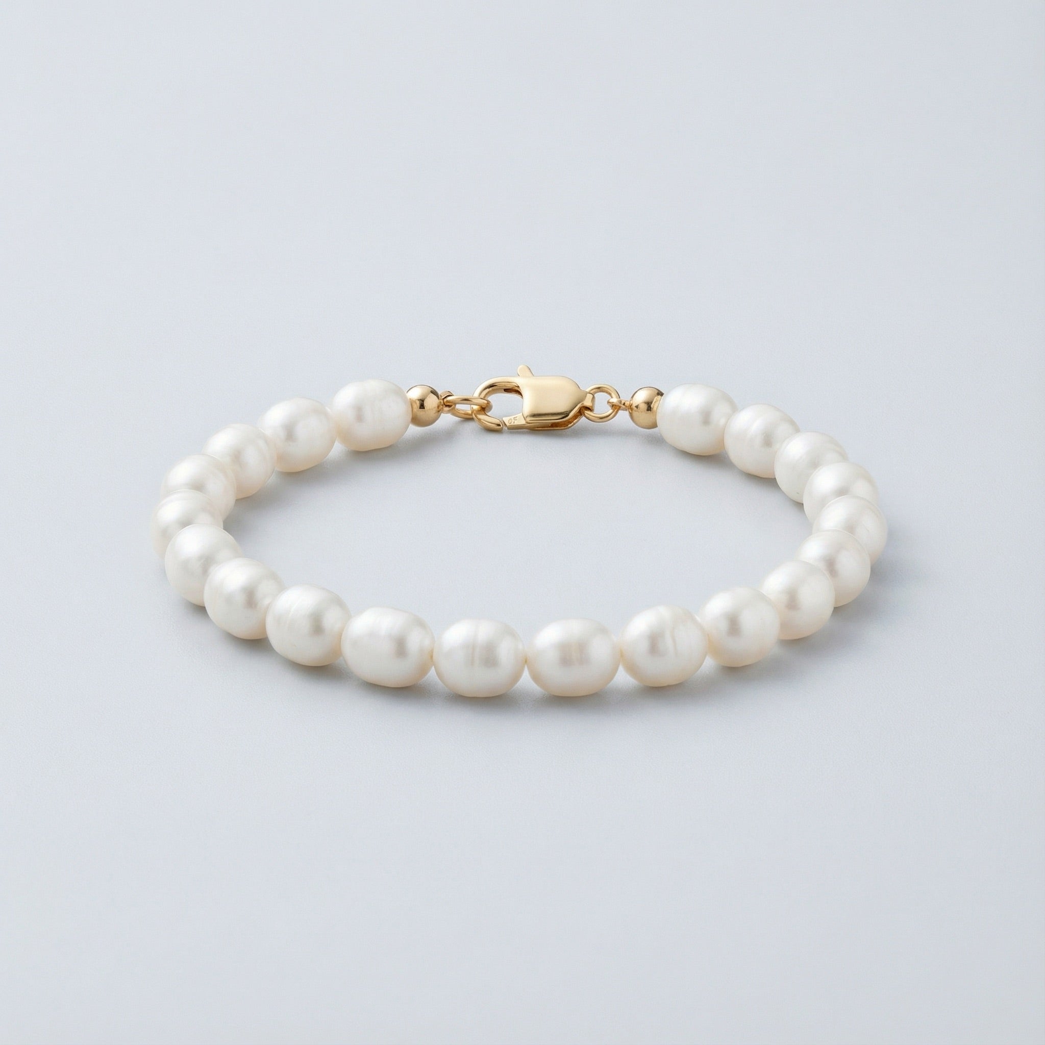 Bracelet features 7-8mm white baroque freshwater pearl beads.